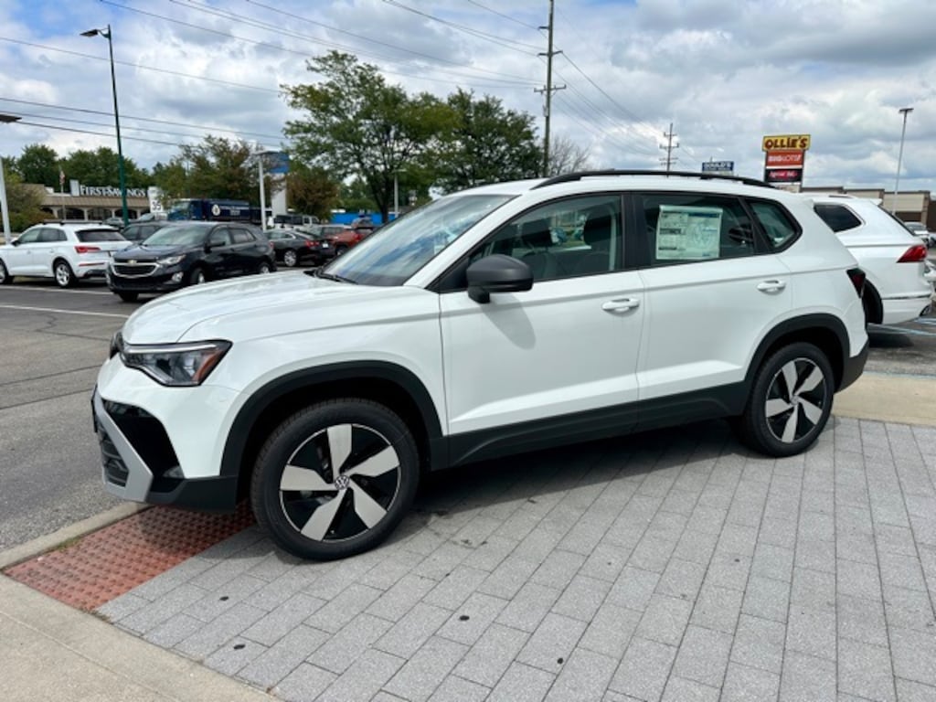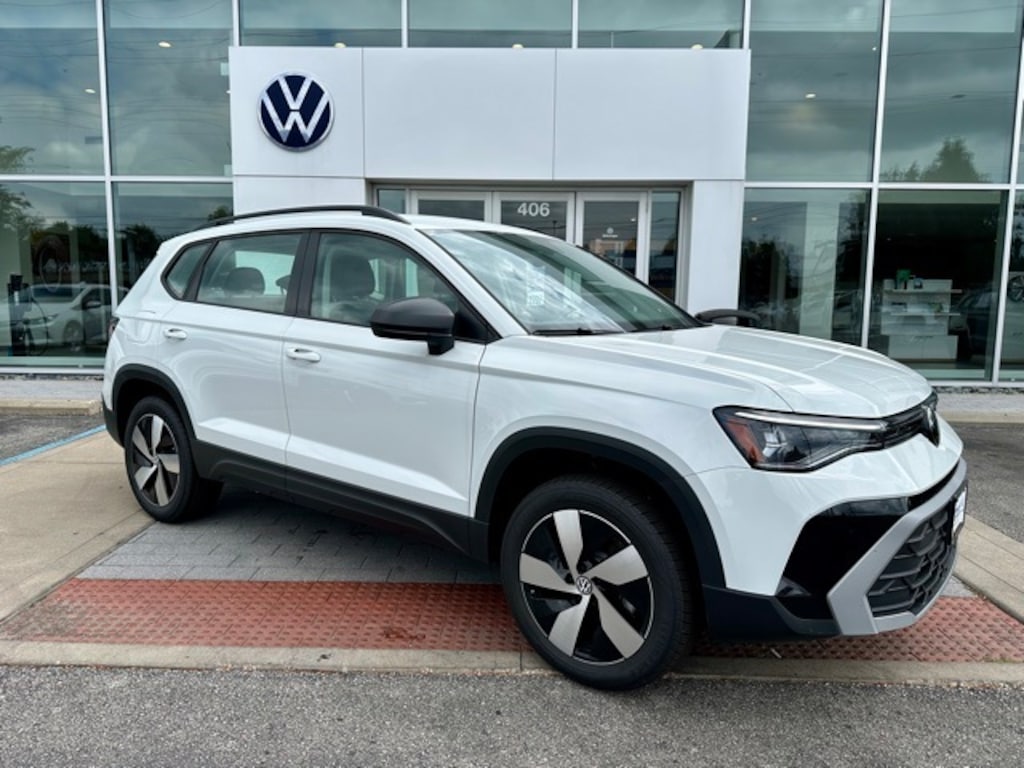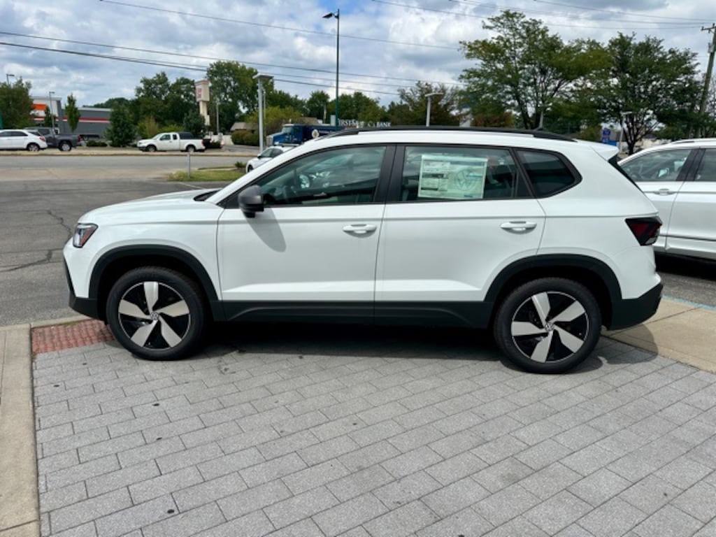 White 2025 Volkswagen Taos 1.5T S AWD 8-Speed Automatic with Tiptronic 1.5L I4 Turbocharged DOHC 16V LEV3-SULEV30 174hp