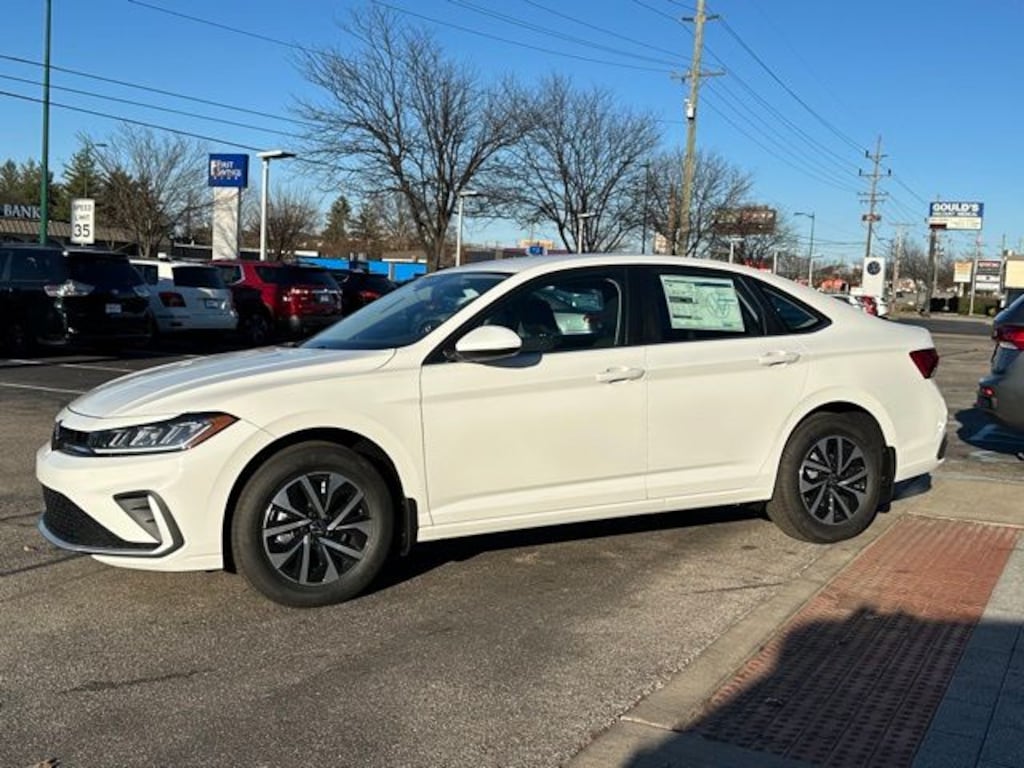 White 2026 Volkswagen Jetta 1.5T S FWD 8-Speed Automatic with Tiptronic 1.5L I-4 DI DOHC Turbocharged Titan Blk Clth Cloth.