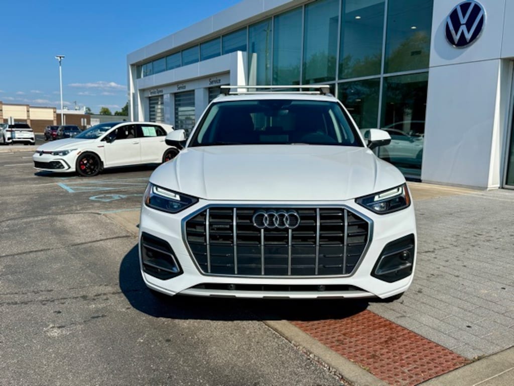 CARFAX One-Owner. Clean CARFAX. Glacier White 2021 Audi Q5 45 Premium quattro quattro 7-Speed Automatic S tronic 2.0L Turbocharged **ACCIDENT FREE CARFAX**, **BLUETOOTH**, **GREAT FUEL ECONOMY**, **HEATED MIRRORS**, **HEATED SEATS**, **KEYLESS ENTRY**, **LEATHER**, **LOCAL TRADE**, **NAVIGATION/GPS**, **POWER SUNROOF/MOONROOF**, **REAR BACKUP CAMERA**, **REAR BACKUP SENSORS**, **ALL WHEEL DRIVE**, Black Leather.