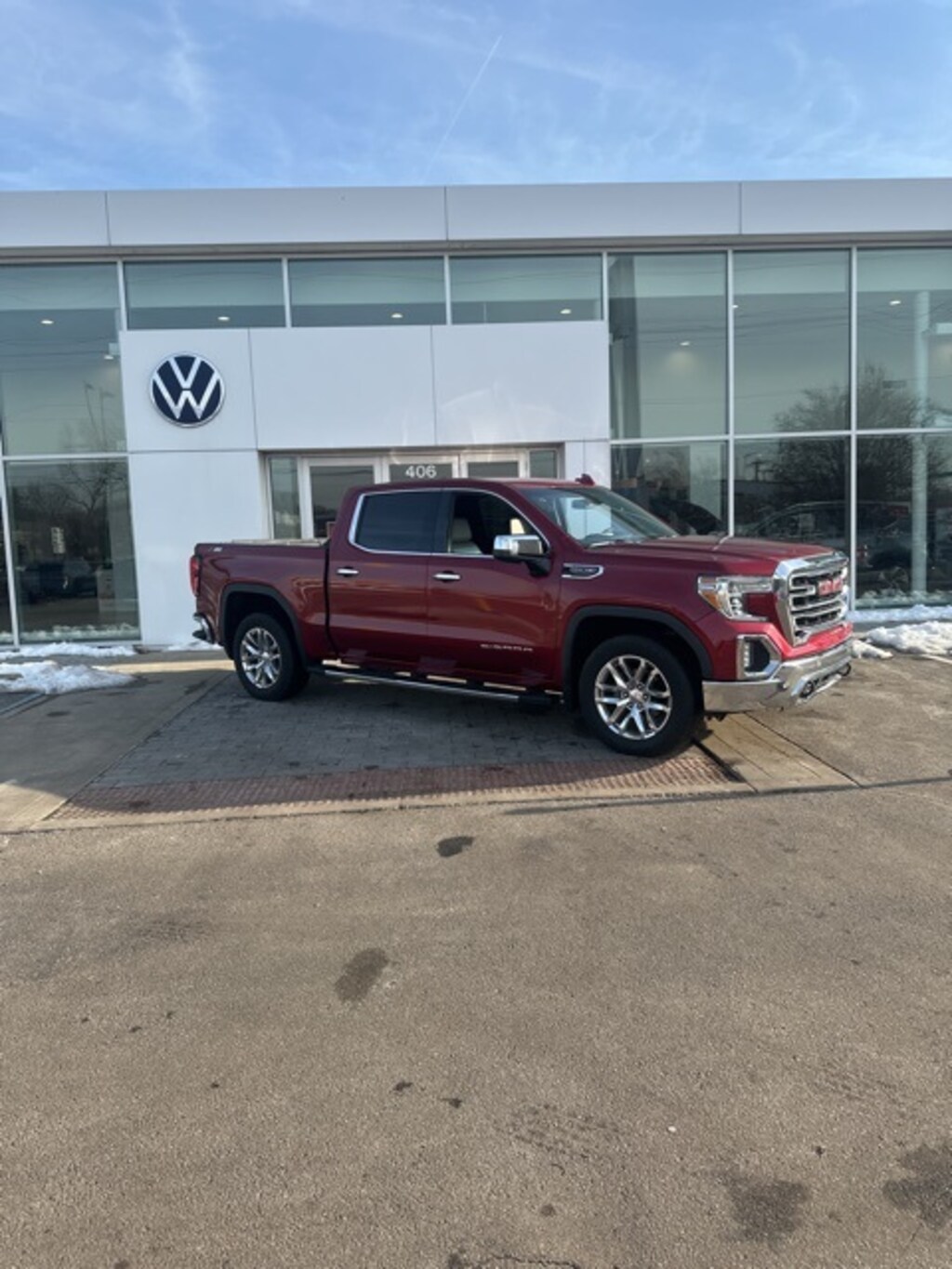 CARFAX One-Owner. Red Quartz Tintcoat 2020 GMC Sierra 1500 SLT 4WD 10-Speed Automatic EcoTec3 5.3L V8 10-Speed Automatic, 4WD, Dark Walnut/Slate Leather.