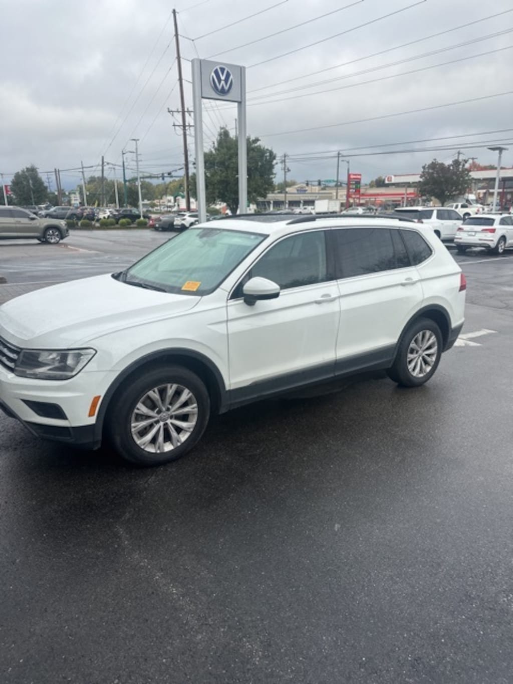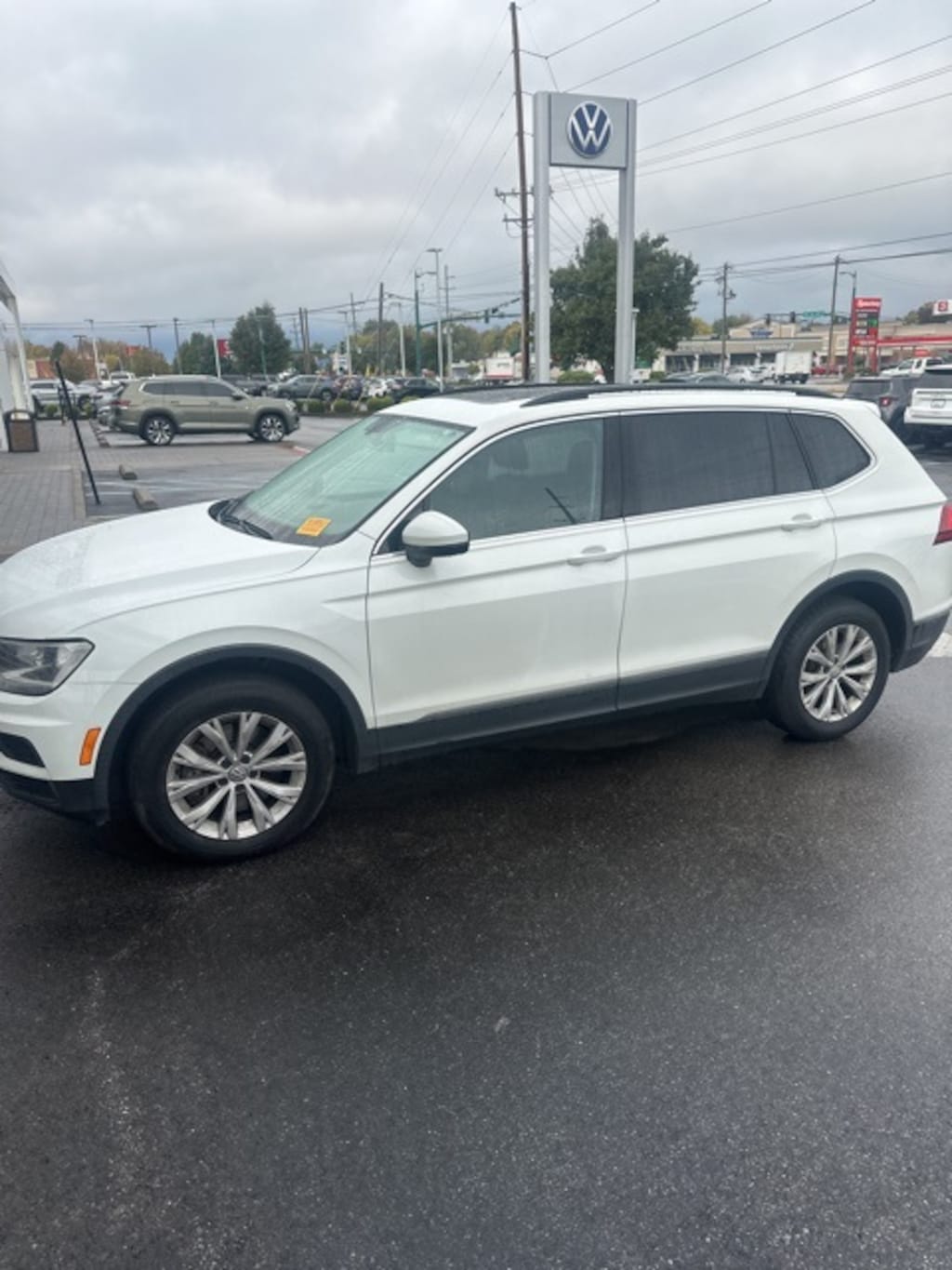 White 2018 Volkswagen Tiguan 2.0T SE 4Motion AWD 8-Speed Automatic with Tiptronic 2.0L TSI DOHC **BLUETOOTH**, **GREAT FUEL ECONOMY**, **HEATED MIRRORS**, **LEATHER**, **LOCAL TRADE**, **NAVIGATION/GPS**, **POWER SUNROOF/MOONROOF**, **REAR BACKUP CAMERA**, **REAR BACKUP SENSORS**, **ALL WHEEL DRIVE**, **3RD ROW SEATING**, AWD, ABS brakes, Alloy wheels, Compass, Electronic Stability Control, Front dual zone A/C, Heated door mirrors, Heated Front Bucket Seats, Heated front seats, Illuminated entry, Low tire pressure warning, Power driver seat, Power steering, Power windows, Remote keyless entry, Steering wheel mounted audio controls, Traction control.